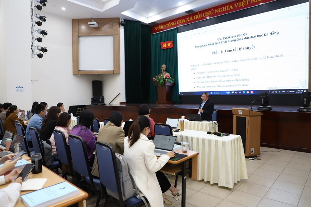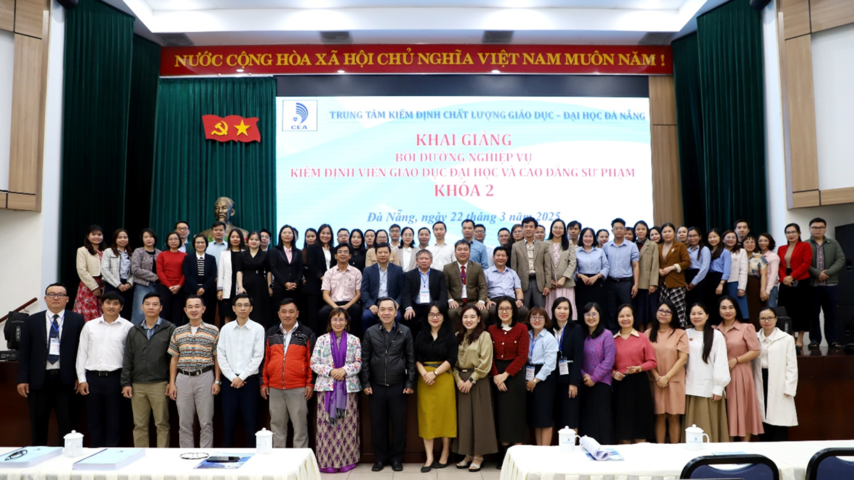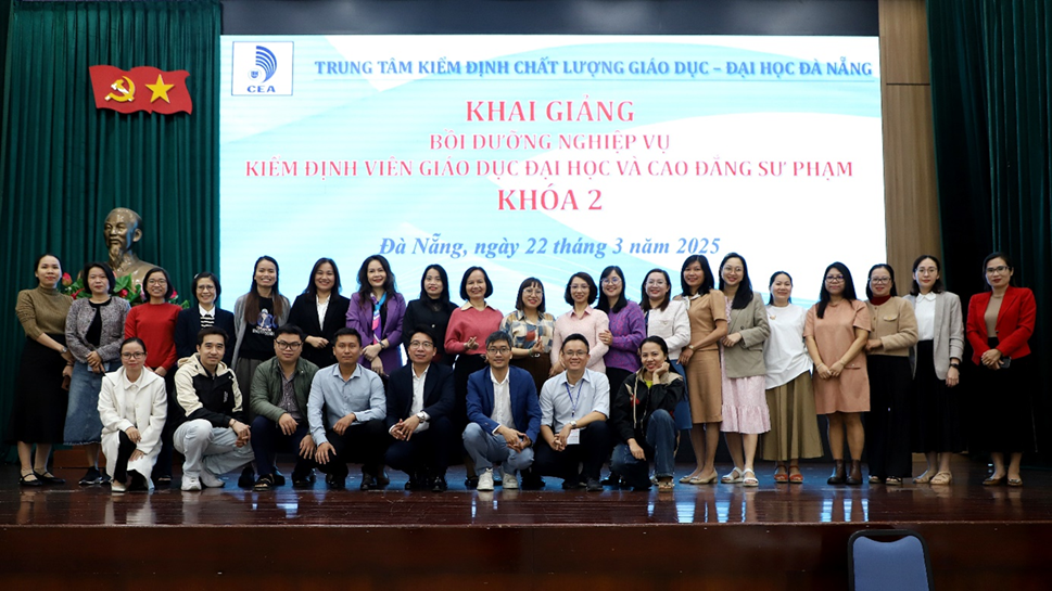 Sáng ngày 22/3/2025 tại Đại học Đà Nẵng (ĐHĐN), Trung tâm Kiểm định chất lượng giáo dục - Đại học Đà Nẵng (KĐCLGD - ĐHĐN) tổ chức khai giảng khoá bồi dưỡng nghiệp vụ kiểm định viên (KĐV) giáo dục đại học (GDĐH) và cao đẳng sư phạm (CĐSP). Đây là Khóa bồi dưỡng thứ hai mà Trung tâm KĐCLGD - ĐHĐN tổ chức với nội dung chương trình được xây dựng và thực hiện theo quy định tại Thông tư số 14/2022/TT-BGDĐT ngày 10/10/2022 của Bộ trưởng Bộ Giáo dục và Đào tạo quy định về kiểm định viên giáo dục đại học và cao đẳng sư phạm. Học viên tham gia khóa bồi dưỡng là lãnh đạo, cán bộ quản lý, giảng viên và chuyên viên đến từ các cơ sở giáo dục đại học và học viện trên cả nước. Khoá Bồi dưỡng được thực hiện kết hợp trực tuyến trên nền tảng Zoom Meeting; hệ thống LMS (Learning Management System) và trực tiếp tại Đà Nẵng.