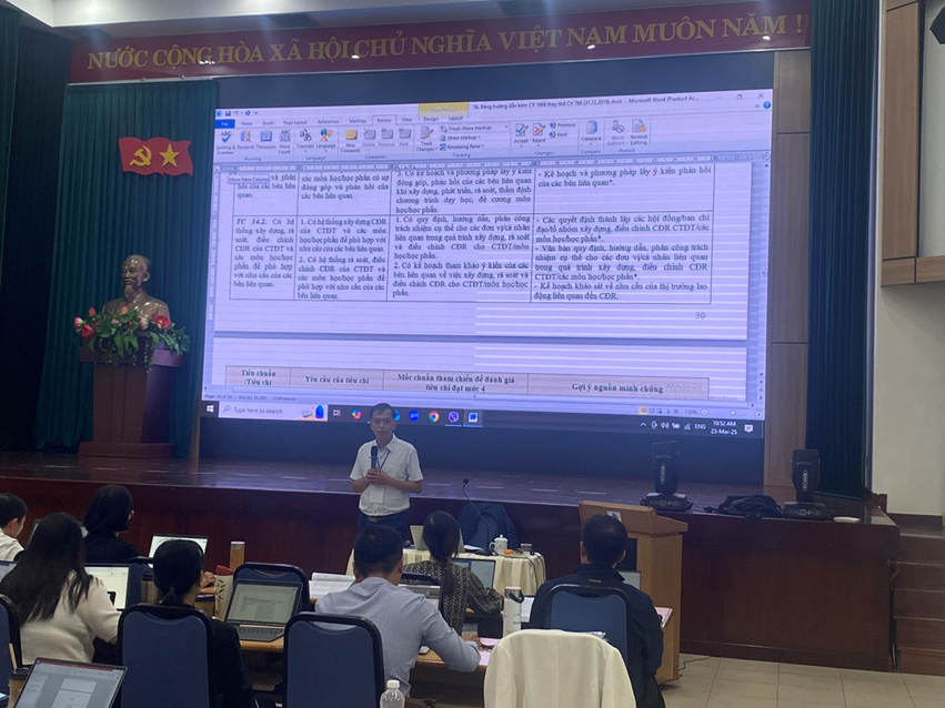 Khóa bồi dưỡng nghiệp vụ kiểm định viên giáo dục đại học và cao đẳng sư phạm diễn ra từ ngày 01/3/2025, gồm 4 học phần, trong đó, các học viên thực hiện Học phần I theo hình thức online và thảo luận, tự học, ôn tập trên hệ thống LMS và phần mềm Zoom; Học phần II và III được tổ chức theo hình thức kết hợp trực tuyến và trực tiếp, sau đó, các học viên tiếp tục tự học, làm bài tập có hướng dẫn trên hệ thống LMS; Học phần IV – chuyên đề kiến tập sẽ được thực hiện vào ngày 28/3/2025 tại Trường ĐH Sư phạm – ĐHĐN và chuyên đề thực tập dự kiến thực hiện trong tháng 5-6/2025 tại các CSGD mà Trung tâm triển khai hoạt động đánh giá ngoài. Học viên được quan sát các hoạt động đánh giá ngoài các chương trình đào tạo tại các cơ sở giáo dục được đánh giá chất lượng do Trung tâm KĐCLGD-ĐHĐN thực hiện.